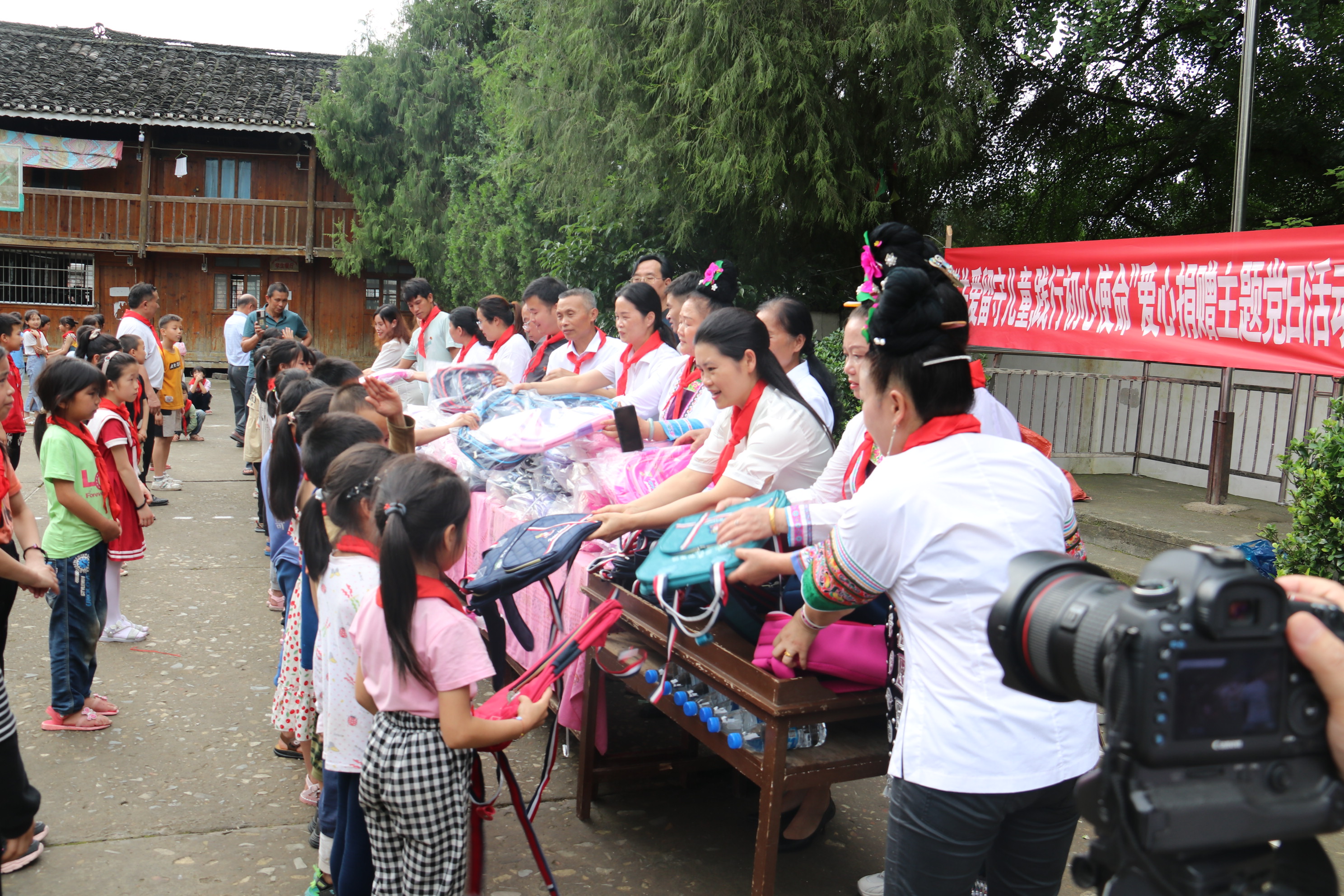在党的生日七一即将来临之际,2022621下午黎平县侗族大歌学校党支部、黎平县红色文化旅行社党支部、黎平县诚德医院党支部、贵州恒丰建筑工程有限责任公司党支部、贵州通建建设工程有限公司党支部到黎平县坝寨乡蝉寨小学开展“关爱留守儿童·践行初心使命”爱心捐赠主题党日活动。本次捐赠活动,共向黎平县坝寨乡蝉寨小学捐赠130个书包
