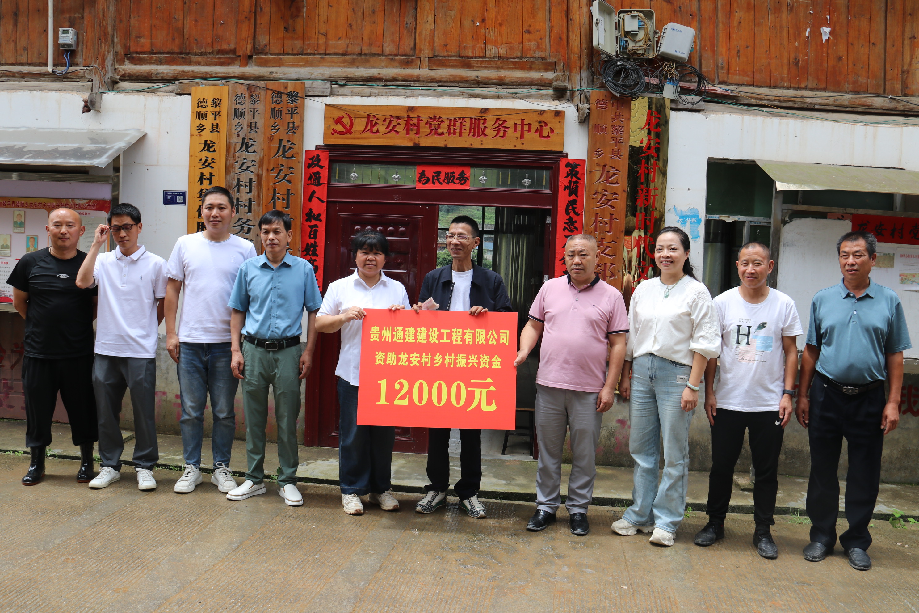 【概要描述】为进一步推进“万企兴万村”工作和持续推进黎平县乡村全面振兴。2024年7月3日,黎平县政协副主席、县工商联主席邰胜英、县委统战部副部长、县工商联党组书记、常务副主席吴东雷、贵州通建建设工程有限公司副董事长付清武、总经理李祖培、副总经理王学发等领导班子成员深入龙安村开展万企兴万村、助力乡村振兴帮扶活动。并向龙安村捐赠帮扶资金现金8000元及4000元的水泥,共计人民币12000元。